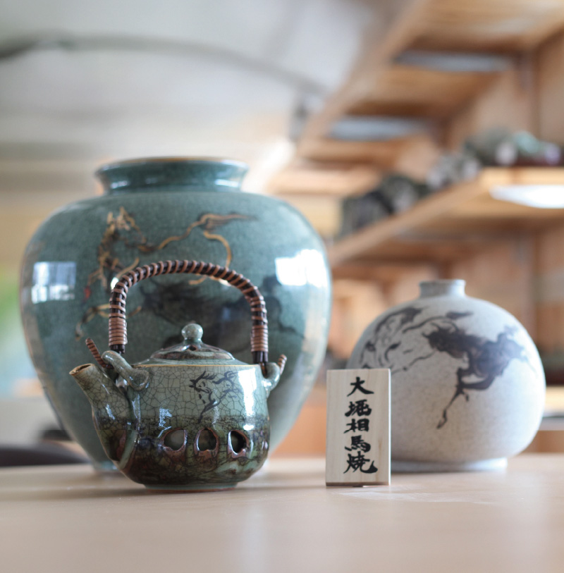 福島県浪江町大堀地区に伝わる「大堀相馬焼」。江戸元禄期に誕生し、300余年の歴史を持つ伝統的工芸品です。ひび割れ、二重焼き、駒の絵などの特徴を有し、町民はもちろん地域のみなさまに広く親しまれてきました。しかし、2011年3月の東日本大震災と原発事故により、20軒以上あった窯元はすべて町外へ避難を余儀なくされました。伝統工芸の後継者不足は以前からの課題ではありましたが、この原発事故で一気に深刻化・加速化してしまったのです。